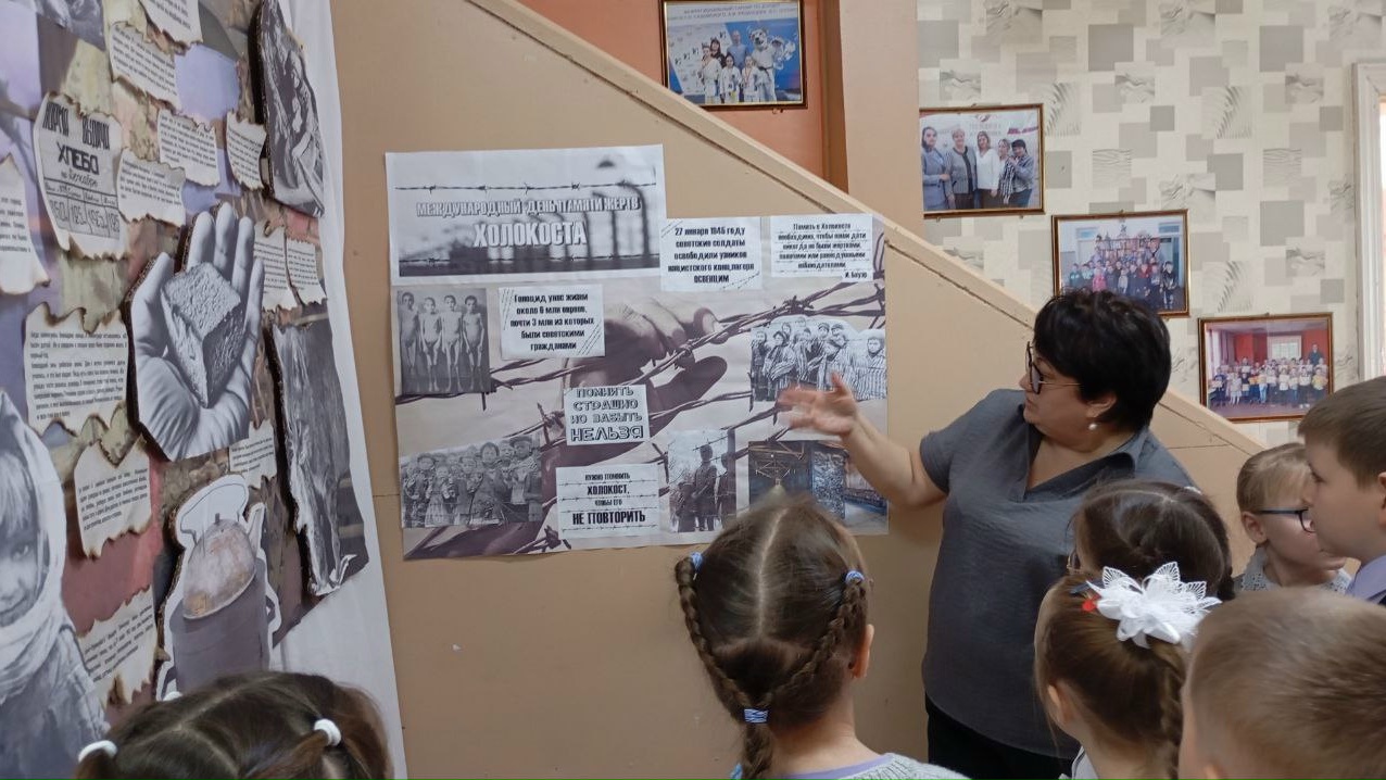 Ребята ознакомились со специально подготовленным стендом и выставкой, посвященными блокаде Ленинграда и геноциду евреев.